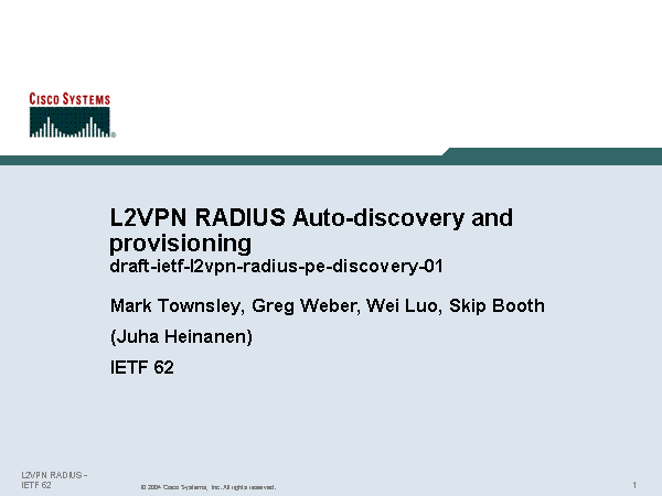 L2VPN RADIUS Auto-discovery and provisioningdraft-ietf-l2vpn-radius-pe-discovery-01
