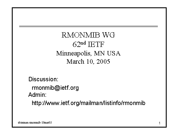 RMONMIB WG62nd IETFMinneapolis, MN USAMarch 10, 2005