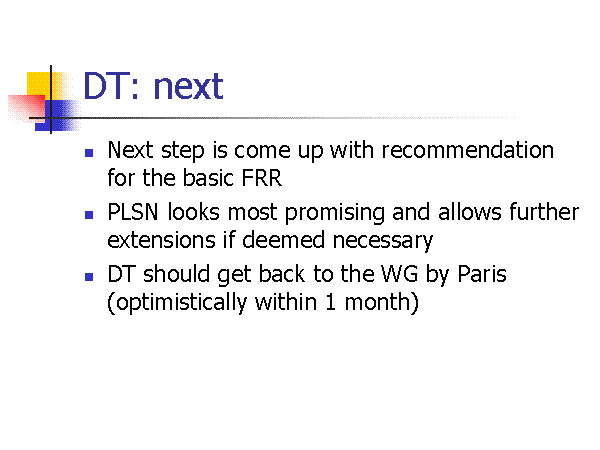 Next step is come up with recommendation for the basic FRR