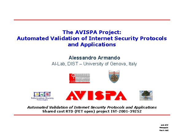The AVISPA Project:Automated Validation of Internet Security Protocols and Applications