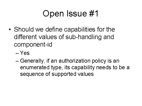Generally, if an authorization policy is an enumerated type, its capability needs to be a sequence of supported values
