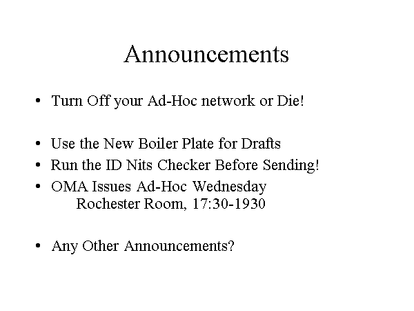 OMA Issues Ad-Hoc Wednesday Rochester Room, 17:30-1930