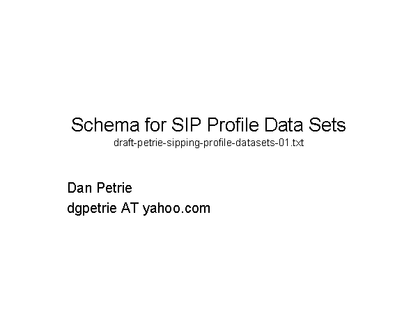 Schema for SIP Profile Data Setsdraft-petrie-sipping-profile-datasets-01.txt