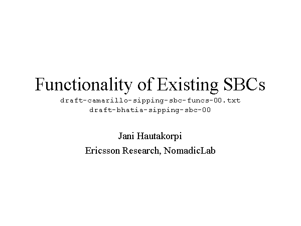 Functionality of Existing SBCsdraft-camarillo-sipping-sbc-funcs-00.txtdraft-bhatia-sipping-sbc-00