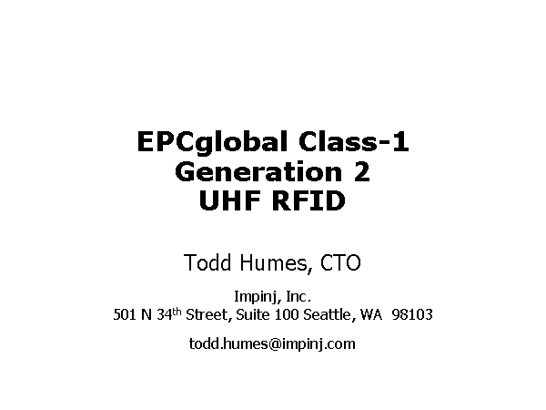 Todd Humes, CTOImpinj, Inc.501 N 34th Street, Suite 100 Seattle, WA 98103todd.humes@impinj.com
