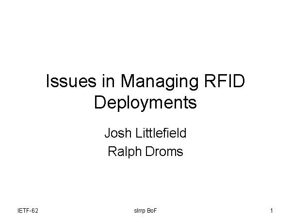 Issues in Managing RFID Deployments
