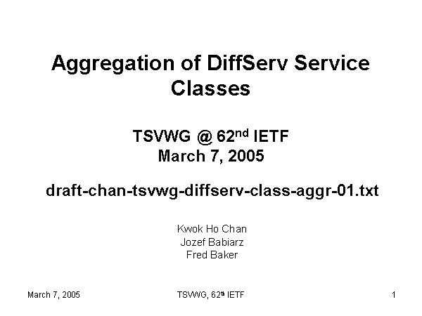 Aggregation of DiffServ Service ClassesTSVWG @ 62nd IETFMarch 7, 2005