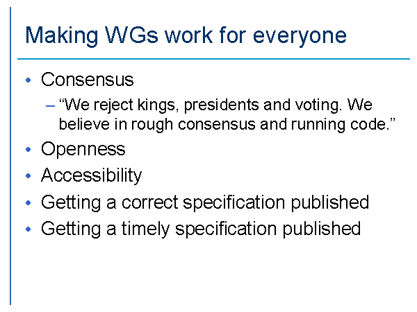 “We reject kings, presidents and voting. We believe in rough consensus and running code.”